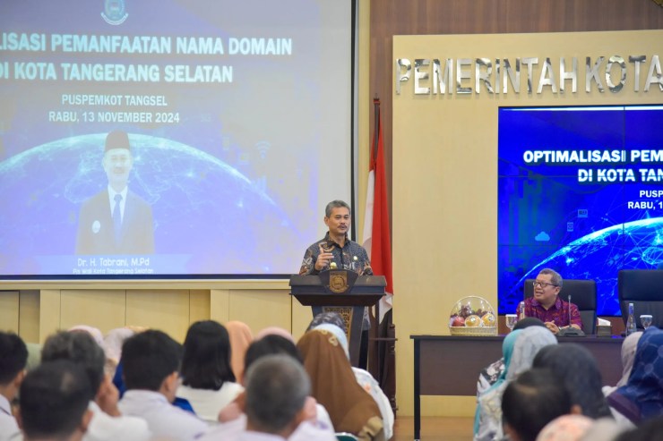 Pemerintah Kota Tangerang Selatan melaksanakan sosialisasi pengelolaan nama domain dalam rangka memenuhi akses pendidikan yang lebih baik. Kegiatan ini diselenggarakan oleh Dinas Komunikasi dan Informatika (Diskominfo) Kota Tangsel di Aula Blandongan, pada Rabu (13/11/2024).