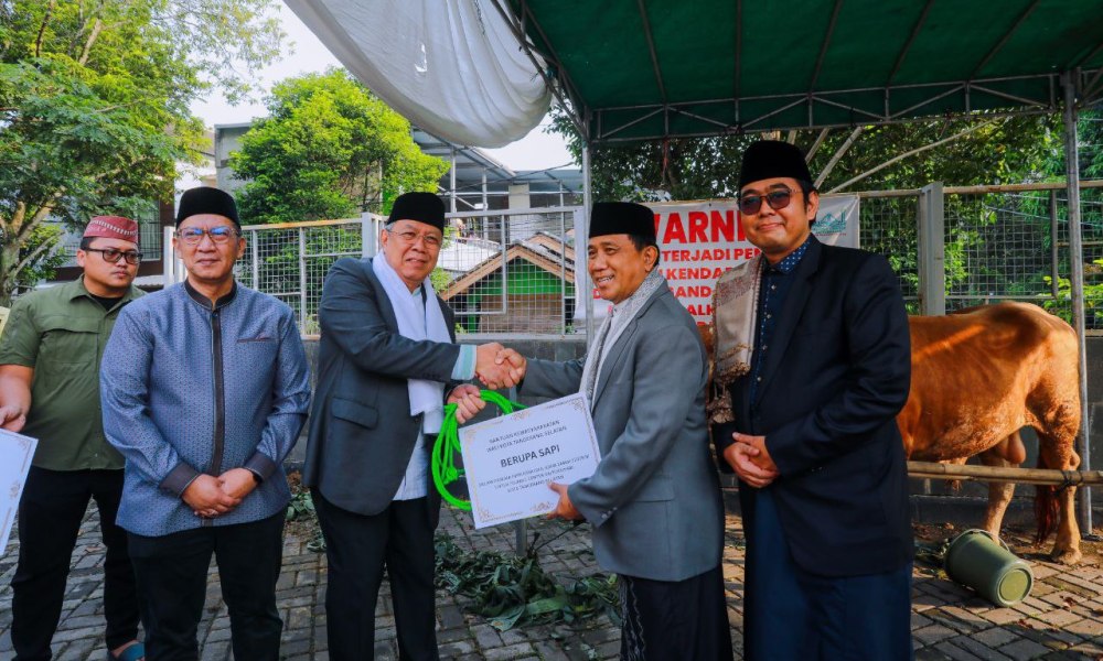 Di kesempatan ini pula, Wali Kota Benyamin menyerahkan sapi sebagai hewan kurban yang nantinya didistribusikan ke masyarakat. (tn)