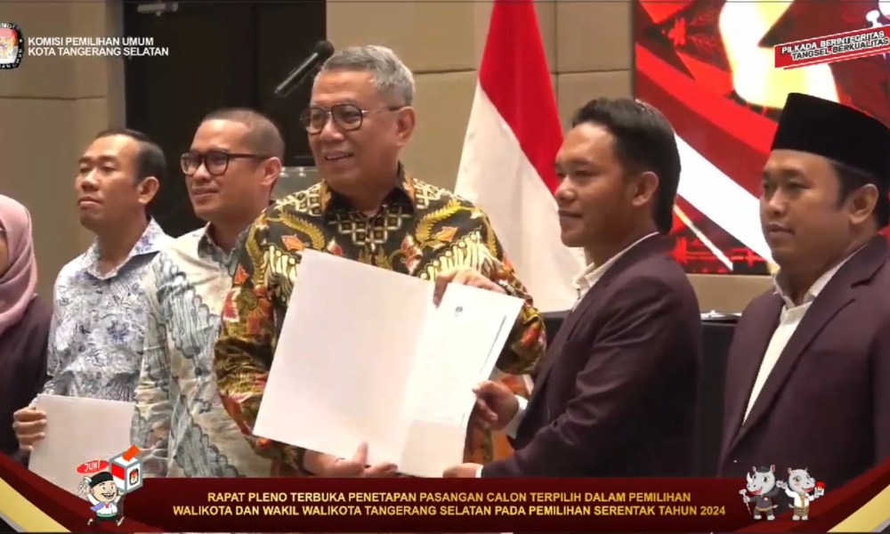 Dalam rapat pleno tersebut, Ketua KPU Kota Tangsel M Taufiq MZ melalui surat keputusan nomor 5 Tahun 2025 menetapkan pasangan Benyamin Davnie-Pilar Saga Ichsan sebagai pasangan calon Wali Kota dan Wakil Wali Kota Tangsel terpilih Tahun 2024